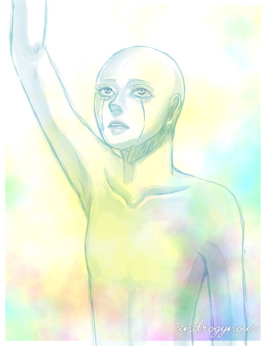 androgynous=中性的な 男とも女とも区別が付かない人。 生まれたてのような純粋で無垢な感じをイメージしました。 難しいですね。中性的な人を描くのは。 ちょっと、女っぽ過ぎたかなー・・・(・_|